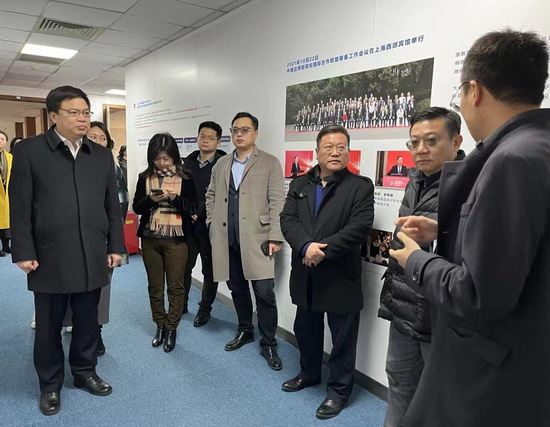 会前,虹桥国际中央商务区管委会、长宁商务委、仙霞新村街道一行调研参观了学校产教融合大楼和中德产教融合发展研究院。