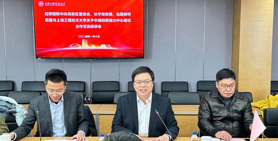 副校长夏春明对虹桥国际中央商务区管委会、长宁商务委、仙霞新村街道一行的到来表示热烈的欢迎。他表示,学校始终重视产教融合的国际化发展,并且已经着手在人才培养模式、工科专业建设、科技成果转化等方面开展全面的对德合作。希望通过今天的合作交流,一方面能够凝聚多方的力量,更加高效、便捷、高质量地推动我校各项中德合作成果的落地开花;另一方面,学校也将通过全面推动中德合作,进一步提升区域产业能级,为大虹桥的区域产业发展提供有力支撑,合力打造中德产学研创新融合新品牌,共同推进教育、科技、人才“三位一体”协同融合发展。