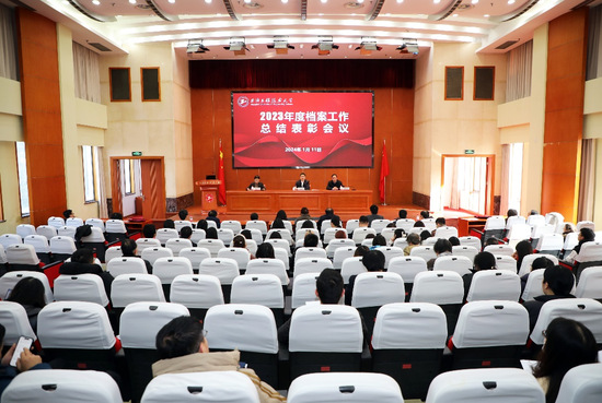 1月11日下午,2023年度档案工作会议在行政楼B301举行。副校长王岩松出席会议,各院、部、处、室、直属单位档案工作分管负责人和全体专兼职档案员参加会议。会议由档案馆副馆长盛芳主持。