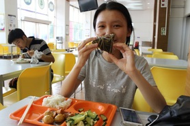 节日当天晚餐时间,学生们陆陆续续地来到在餐厅吃饭,在打饭窗口就可以看见堆如小山似的粽子,每位领到粽子的同学欣喜不已。来自大一的李同学说:“这是我在校以来第一次在食堂吃到免费发放的粽子,还是今年端午节吃到的第一个,感到特别惊喜和感动。”已经在上海某公司实习的大四的周同学欣慰的说道:“马上毕业了,这是我在母校过的最后一个端午节,能在毕业前再次感受到节日的喜庆和学校的温暖,让我十分感动!”同学们吃着端午节的粽子,感受着学校的温暖。