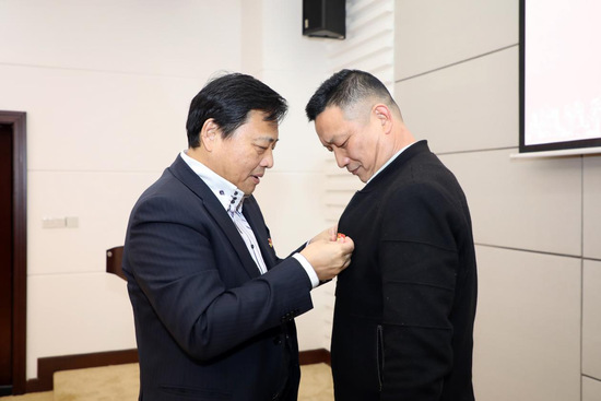 校党委副书记史健勇为新党员徐军同志佩戴党员徽章并讲话,他表示,入党宣誓是新党员庄严而神圣的一课,徐军同志作为后勤实业发展中心党总支近年来发展的1名新党员,是坚守岗位、默默无闻、无私奉献后勤人的代表和缩影。希望后勤广大党员和教职工在中心党总支带领下,继续发扬后勤人“甘为人后,勤为人先”的奉献精神,激发更多在后勤保障、校园服务一线的优秀员工积极向党组织靠拢,坚定理想信念,立足岗位做贡献,切实发挥党组织、党员在工作一线的榜样引领作用,筑牢党组织在学校服务保障一线坚实的战斗堡垒。