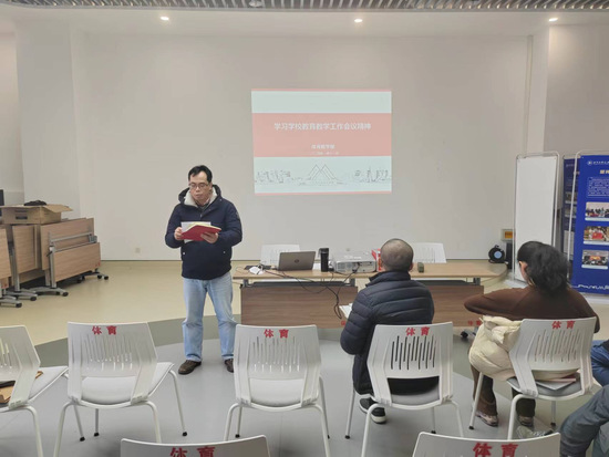 为深入学习贯彻学校宣传思想文化工作会议暨师德师风建设工作会议和教育教学工作会议精神,1月11日上午,体育教学部在体育馆205会议室召开2024年第1次全体教师会议传达学校会议精神,下午教研室、党政办分组学习会议精神。