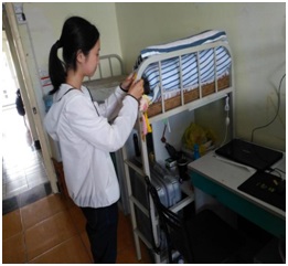 为了能够更好的提高男生们打扫寝室的积极性,彻底的改变寝室里脏、乱、差的现状,学院以年级为单位成立了四支女生评审团,由辅导员带队,对男生寝室进行逐一评审打分。评分表由地面卫生、物品摆放、床铺整洁、寝室文化等几项内容组成,如果安排专人讲解还有加分。每层楼依照打分的高低评出3个最优寝室,由评审团的女生们为该寝室赠送装有艾草的香囊。