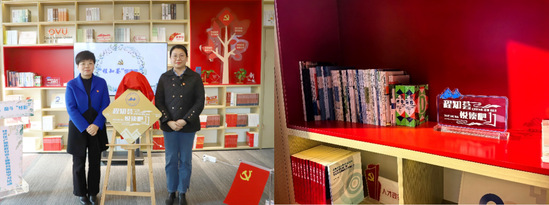 “程知荟悦读吧”的设立,是我校知联会积极服务地区经济发展,持续扩大对外交流的一项创新举措,是学校“程知荟”工作品牌的持续深化,不仅有助于我校知识分子研究成果的传播与共享,提升学校的学术影响力,同时为地区经济建设注入新的活力。在松江区社会工作党委副书记李杰瑜,经开区党工委副书记顾文磊,经开区党工委委员、人大工委副主任杨茜,以及上海工程技术大学教师代表、经开区产业集群党委各党支部书记、党员代表、区知联会经开区分会会员代表近50余人的见证下,校党委组织部副部长、统战部副部长熊伟,经开区党工委委员、人大工委副主任杨茜共同为“程知荟悦读吧”揭牌。