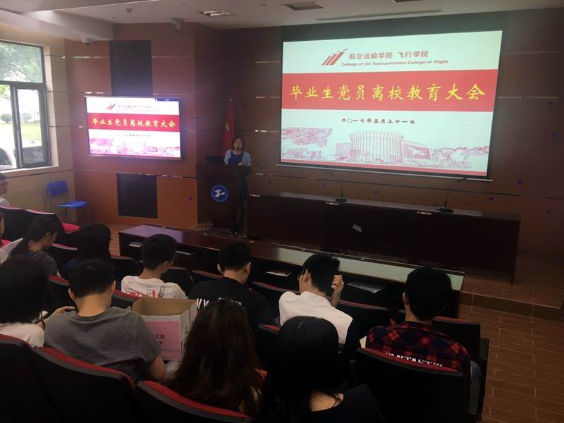 值此毕业临别之际,为了更好的总结在大学期间党员的成长历程,做好党员经验总结以及离校教育工作,5月31日上午,航空运输学院、飞行学院在航飞报告厅6109室举行了毕业生集中党性教育。学院党总支书记虞蓉,各教工党支部书记、学生党支部书记,全体毕业生党员以及部分积极分子参加了本次会议。会议由学院党总支组织员陈巍巍主持。