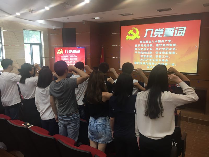 会议伊始,在组织员陈巍巍的领誓下,全体党员重温入党誓词。在庄严地宣誓过程中,同学们仿佛又回到了刚刚入党时那令人激动的时刻。