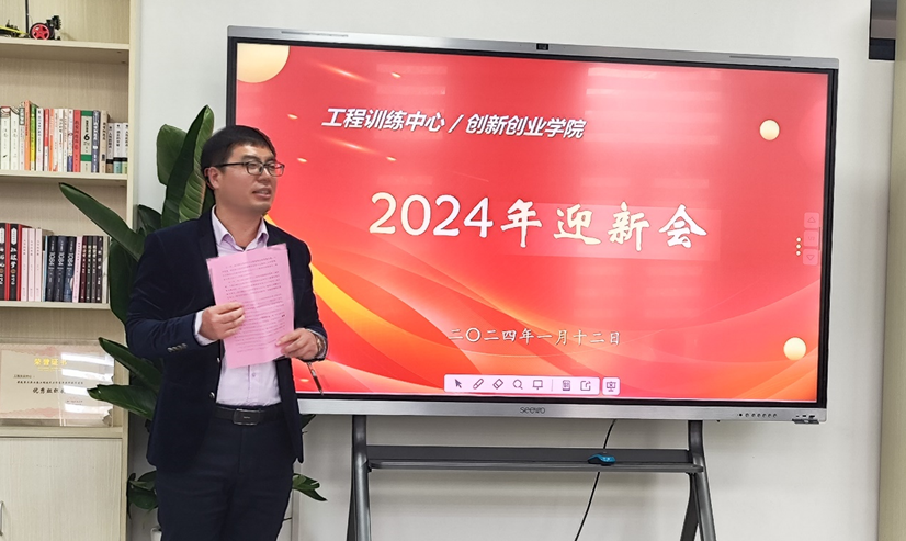 史健勇副书记对工训中心全体教职工致以亲切问候,他表示,过去一年工训中心新班子勇于担当,文化环境焕然一新,带领全体教职工奋力前行取得较好成效,出色完成了主题教育、本科教育教学审核评估、国家级实验教学示范中心总结评估等重要事件;2024年是学校深化改革的关键一年,希望全体教职工在班子带领下鼓足干劲、再接再厉,紧扣内涵建设和高质量发展主线,把工训中心和双创学院建设得更好,不断提高师生的三感指数。
