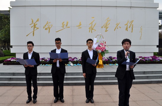 在庄严肃穆的气氛中,毕业生党员梁俊卿同学用自己创作的诗词,代表全体党员饱含深情地表达对烈士的追思,毕业生党员代表以“朗读者”形式,在烈士纪念牌前诵读诗歌,在庄严的仪式中抒发对烈士的敬仰,强化对党的感情。在纪念碑前,全体毕业生党员重温入党誓词,每一句誓辞都回荡在闵行区烈士陵园上空。