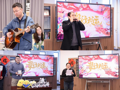 节目期间,进行了三次抽奖活动,将联欢会的气氛推上一波又一波高潮。最后,学院领导为全体属龙的老师送上了龙年吉祥物,联欢会在一片欢声笑语中落下帷幕。