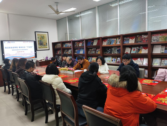 程玉莲老师十分关心留校学生的学习生活情况,她提醒同学们要充分利用寒假时间,充实提升自我;要学会感恩,加强与家人的沟通交流并及时送上祝福;祝福大家以昂扬饱满的姿态迎接新春,在学校度过一个平安、祥和、温馨的寒假。张强老师首先提醒同学们牢记安全第一,特别是实习路上和宿舍安全,呼吁学生自觉遵守法律法规和校纪校规,建设和谐的校园环境;希望同学们珍惜时光、不负韶华。注意劳逸结合,适量进行体育锻炼,保持乐观向上的健康心态,迎接新的一年的到来。