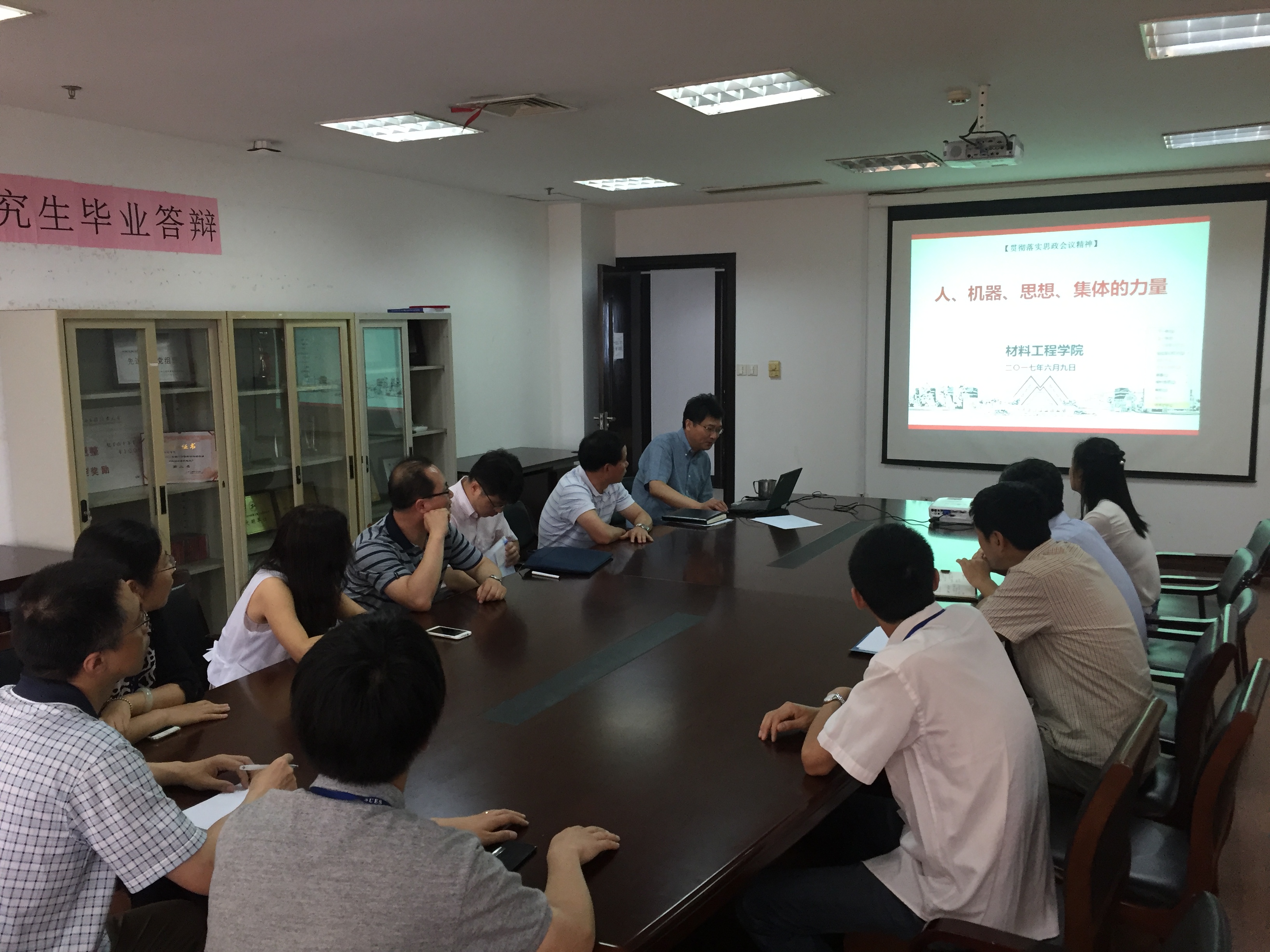 6月9日下午,材料工程学院党委继续着“全国高校思想政治工作会议精神”为主线的党委书记讲党课活动,本次主题为 “人、机器、思想和集体的力量”。本次授课的对象为学院副教授、系室主任及青年教师骨干。