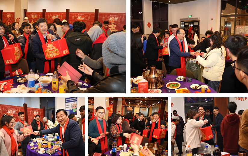 校领导们为留校学生送上“新春大礼包”和“新春爱心餐券”,同学们纷纷表达对学校悉心关怀的感谢之情,喜庆的年味在全场“流动”,浓浓的情谊在程园“洋溢”。