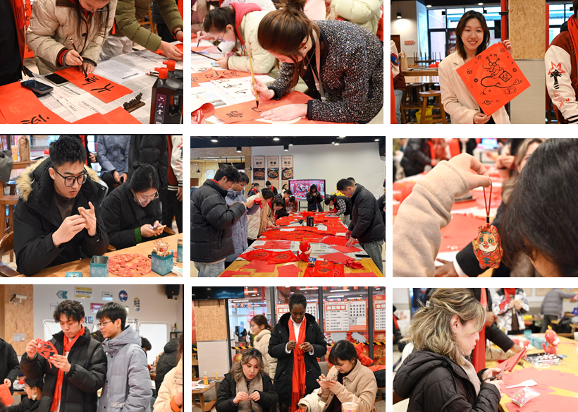 联欢会现场还开设了“新春集市”,师生们书春联、写“福”字、缝香包、剪窗花;体验传统益智玩具(鲁班锁、九连环)的趣味,不亦乐乎。学校还积极调研留校同学的需求,在新春宴席后,为留校学生精心安排了“电影欣赏”,放映贺岁经典影片《甲方乙方》。倡导留校学生致电父母,报平安、话亲情,与家人分享新春快乐和学校关怀,加强感恩教育。