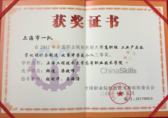 6月7日至8日,2017年全国职业院校技能大赛高职组“工业产品数字化设计与制造”项目在苏州工业职业技术学院正式打响。经过紧张激烈的比赛,高职学院代表队由张利华、马海涛老师为指导老师,栾晓峰、韩通同学组成的参赛代表队斩获该赛项三等奖。