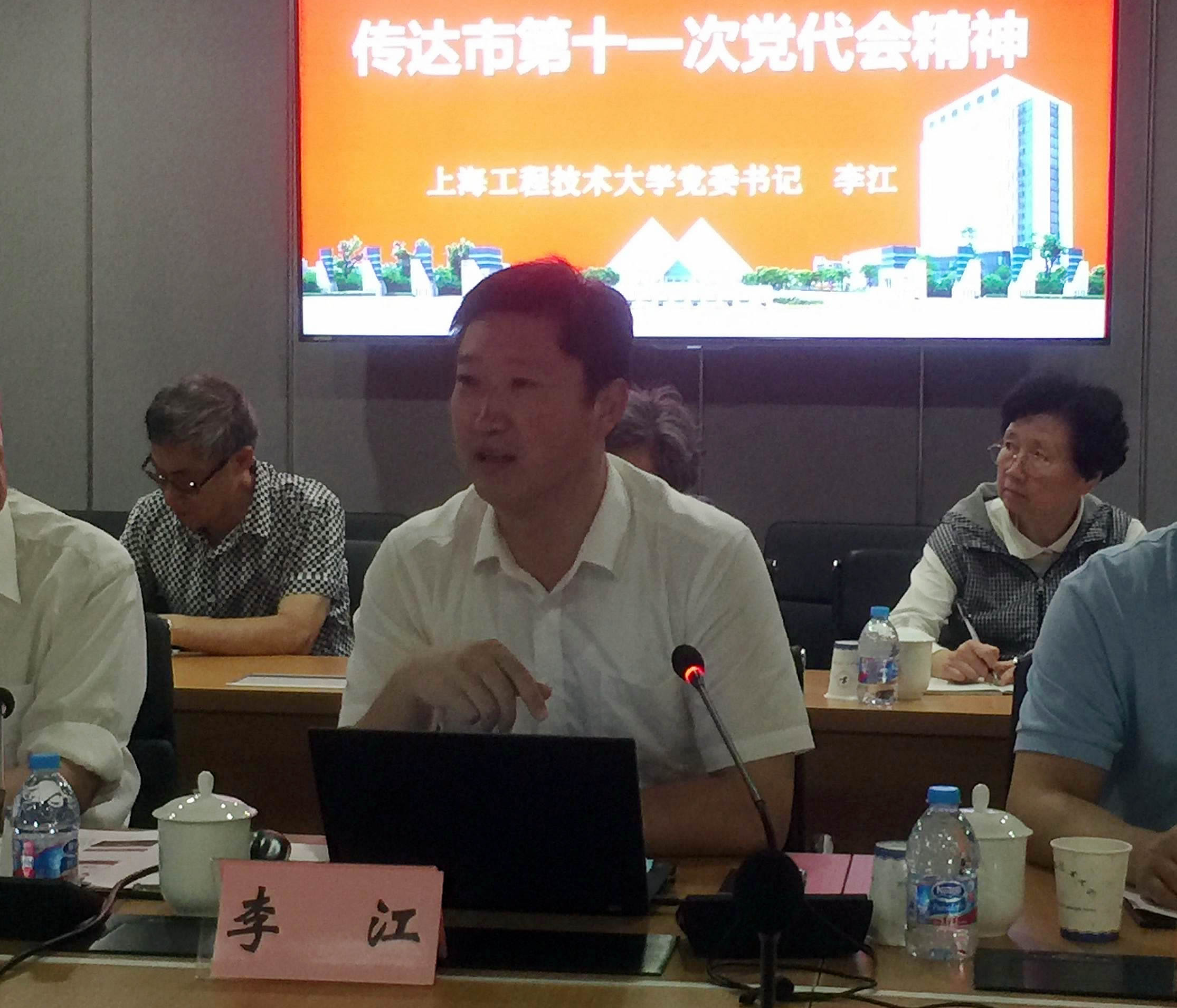 会上,市党代表、校党委书记李江传达了上海市第十一次党代表大会精神,他就大会筹备情况和党代会报告主要精神包括三大块、八个部分进行了传达学习。他指出,此次党代会5月8日至5月12日召开,历时5天,韩正同志从改革开放取得重大成果、创新驱动发展实现关键突破、中心城市功能不断增强、社会治理创新走上新路、民生福祉持续增进、国际文化大都市建设成效明显、党的建设全面加强等七个方面取得的成绩,对上海过去5年的发展进行了总结,重点阐释了今后5年工作的指导思想和奋斗目标,部署了未来5年的主要工作。这次大会的主要任务是高举中国特色社会主义伟大旗帜,在以习近平同志为核心的党中央领导下,上海要勇当改革开放排头兵、敢为创新发展先行者,深入推进建设,加快向具有全球影响力的科技创新中心进军,全面提升城市的吸引力、创造力、竞争力,让人民拥有更好生活。