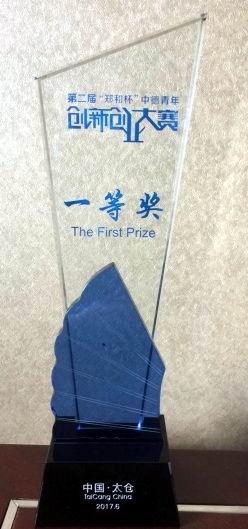 本次大赛设立中德大学生创业组、中德青年创客组和中德青年技术创新组,共有来自中国、德国、美国等国家的295个项目参赛,吸引国内东南大学、西北工业大学、中南大学、苏州大学、南京航空航天大学等诸多高校的优秀作品参赛,涉及高端装备制造、新材料、生物医药、“互联网+”等领域。经过前期的激烈竞争,78个项目入围决赛,围绕各自的项目成果进行了展示和汇报。经过作品提交、个人答辩、专家现场提问及评审等环节,由我校化学化工学院刘锡建、陆杰老师指导的任兰芳、王烨颖、黄智、闫大同学申报的项目《一种可快速合成的新型多功能抗癌纳米药》一举获取大奖。