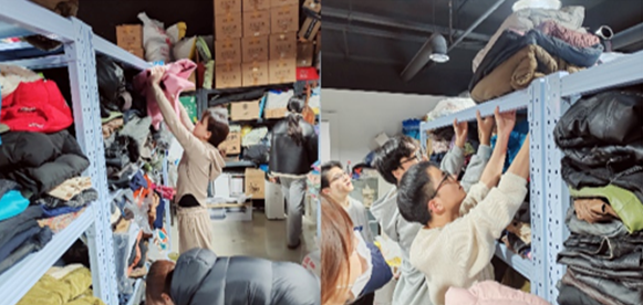 “智”领前行。研究生第二党支部、第三党支部配合张志勇公益服务社设立公益集市义卖摊位、结合专业知识为社区居民进行科普宣传,维持义卖活动现场秩序,并在仓库将居民捐赠的衣物进行分类整理。义卖活动现场,同学们展示课题研究的功能性服装与针织面料、首饰等设计作品,同时还向居民讲解了服装如何与科技及艺术相结合为人们的生活工作提供便利。研究生第一党支部和第四党支部积极参与车墩镇长溇村村史馆暨丁娘子布艺馆建设,助力用活长溇村红色文化资源。