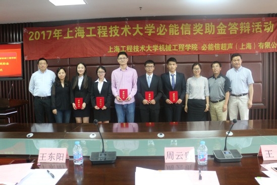 6月23日下午,机械工程学院在行政楼506室举办第三届 “必能信”奖助金答辩会,必能信超声(上海)有限公司亚洲工程部总监周云贵、人事经理王瑜、设备工程部经理黄其高、人事经理曾宇瑛,机械工程学院党委副书记王东阳出席会议,会议由柳苗苗老师主持。