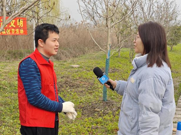 学生志愿者们早早来到广富林郊野公园,他们手拿铁锹,分工合作,两两配合扶正树苗,然后培土浇水,学生们乐在其中,干劲十足。活动过程中,松江融媒中心的记者对学生代表进行了采访,当提及本次活动的体验与感受时,学生代表说到:“树木不仅美化环境,还能净化空气、保持水土,绿水青山就是金山银山。希望每一个人都能参与到植树活动中,我们的绿色家园将更加美丽。”