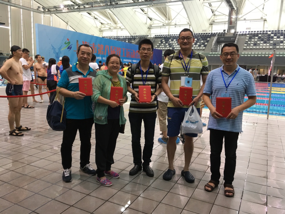 近日,由中共上海市教育卫生工作委员会、上海市教育委员会和中国教育工会上海市委员会主办,上海大学承办的上海市第八届教工运动会游泳比赛在东方体育中心游泳馆盛大举行,我校通过校内游泳比赛选拔,派出了由教工游泳协会教练金美祥老师领衔, 来自城市轨道交通学院肖曼琳、服装学院柯宝珠、基建处谭震、电子电气工程学院江文超、图书馆刘智惠、信息办顾建荣、社会科学学院孟卫军、刘兴民等9名教职工组成的代表队。