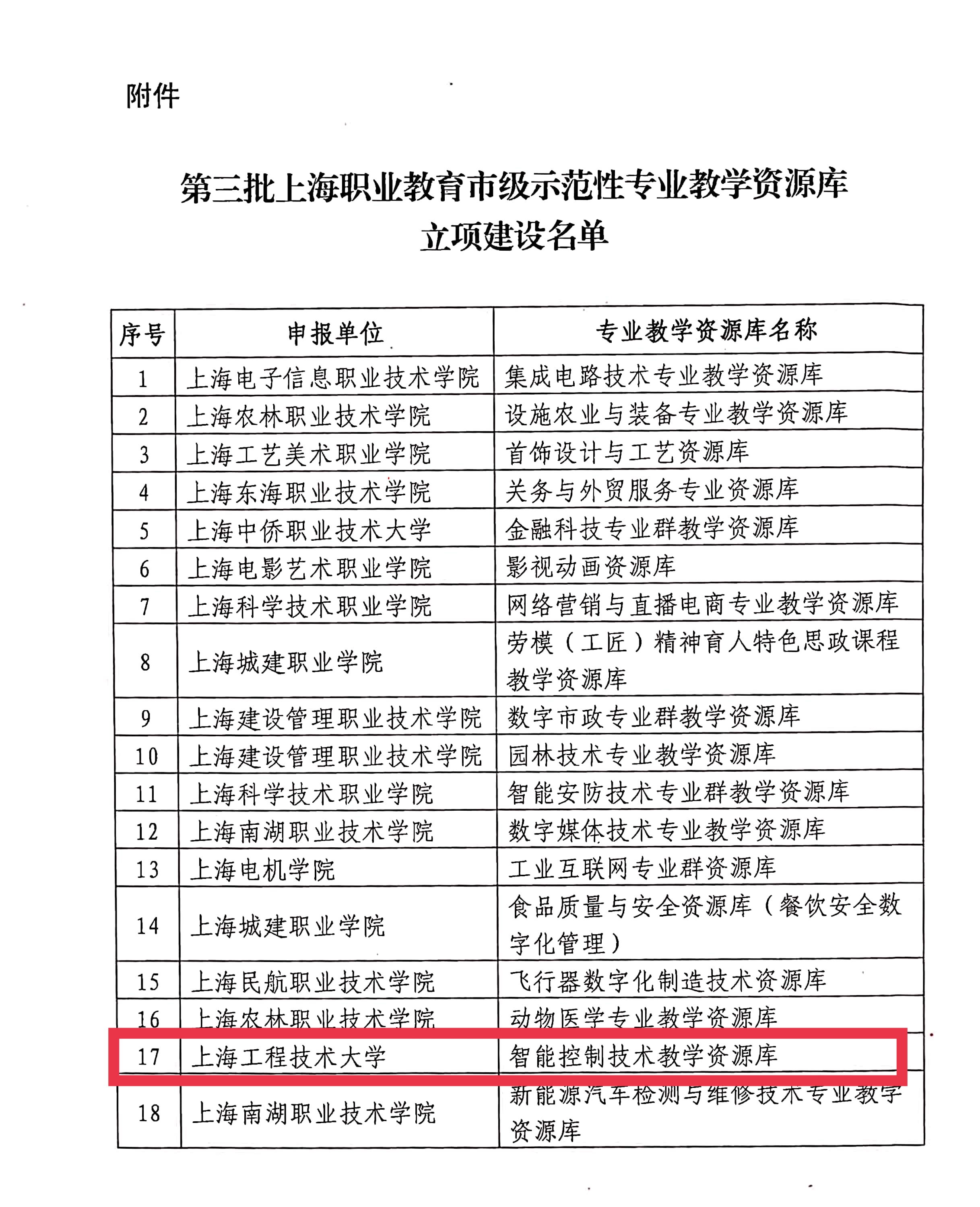 日前,上海市教育委员会公布《第三批上海职业教育市级示范性专业教学资源库立项建设名单》,高职学院申报的《智能控制技术教学资源库》获批立项。