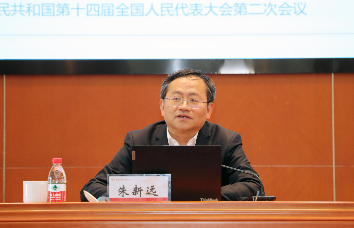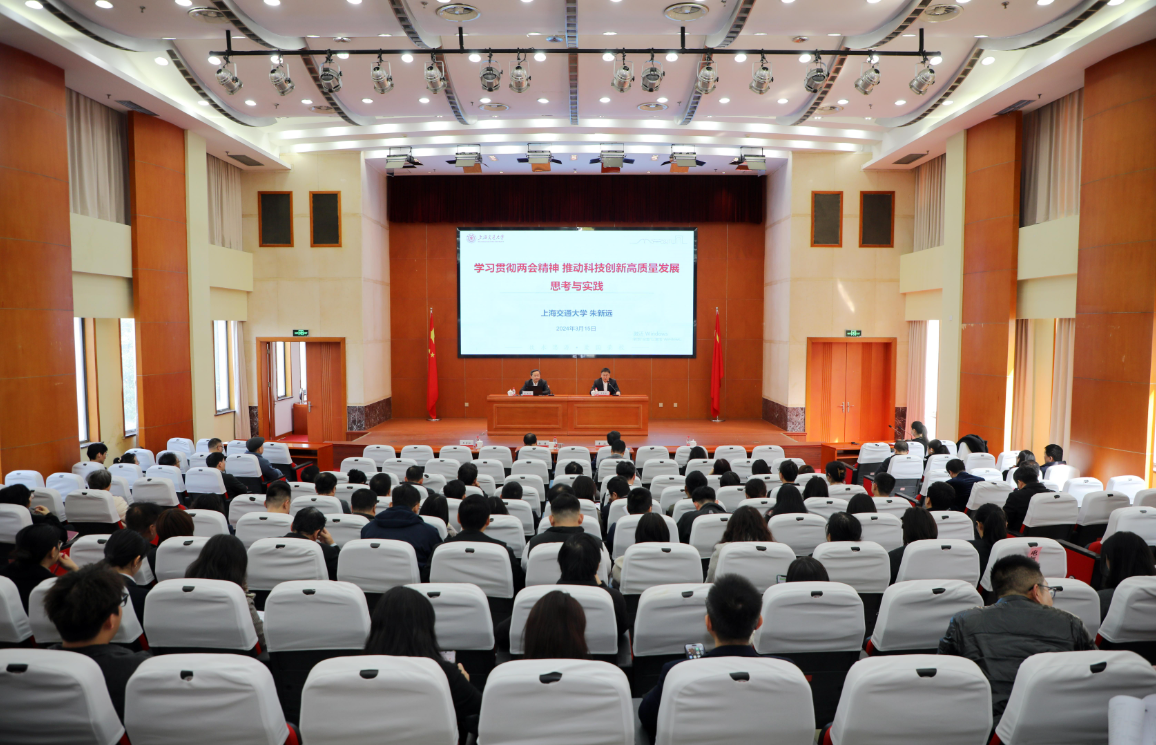 3月15日下午,学校举行党委理论学习中心组(扩大)学习会暨学习贯彻习近平总书记考察上海重要讲话精神专题培训,特邀上海交通大学副校长朱新远作《学习贯彻两会精神 推动科技创新高质量发展思考与实践》专题辅导报告。校党委理论学习中心组成员,全体中层干部,科研秘书,辅导员代表参加会议,会议由副校长王岩松主持。