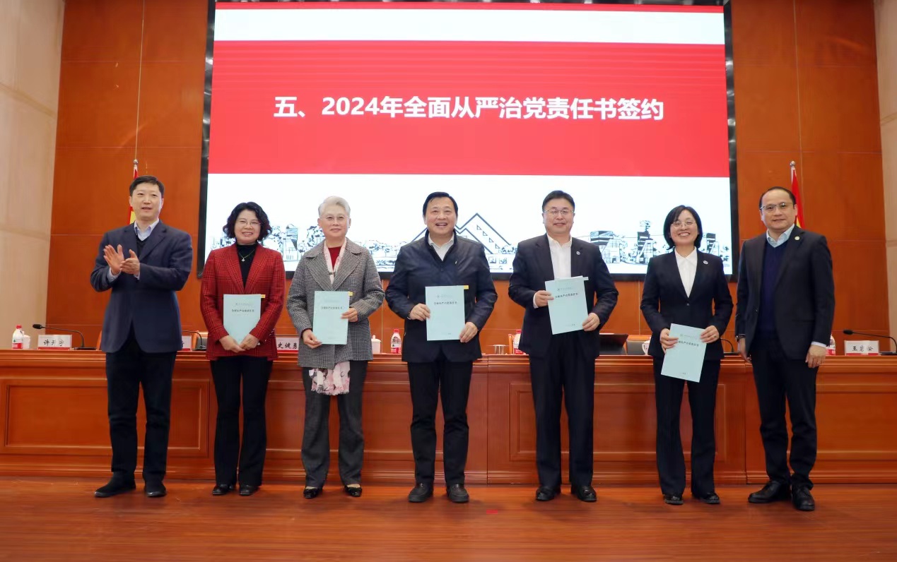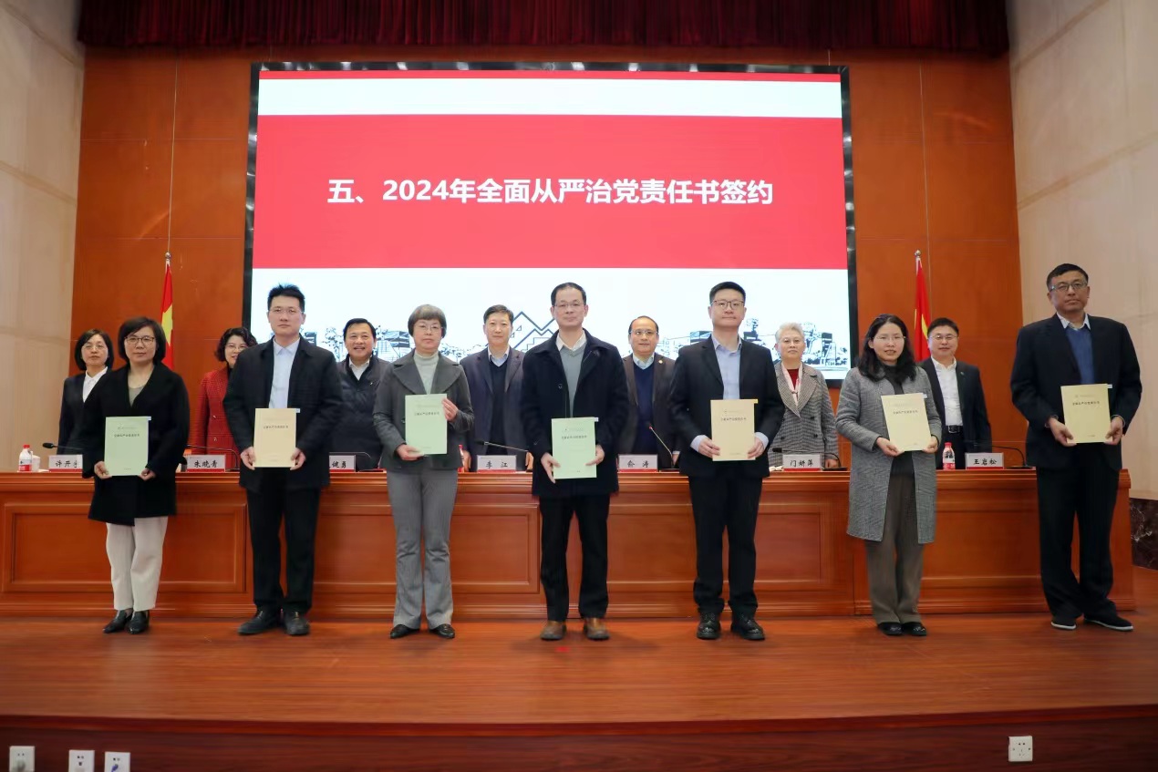 会上,学校举行了全面从严治党责任书签约仪式。校领导正职与副职,全体校领导与机关部处长、直属单位负责人、学院书记和院长代表分别签约并颁发了2024年学校全面从严治党责任书。