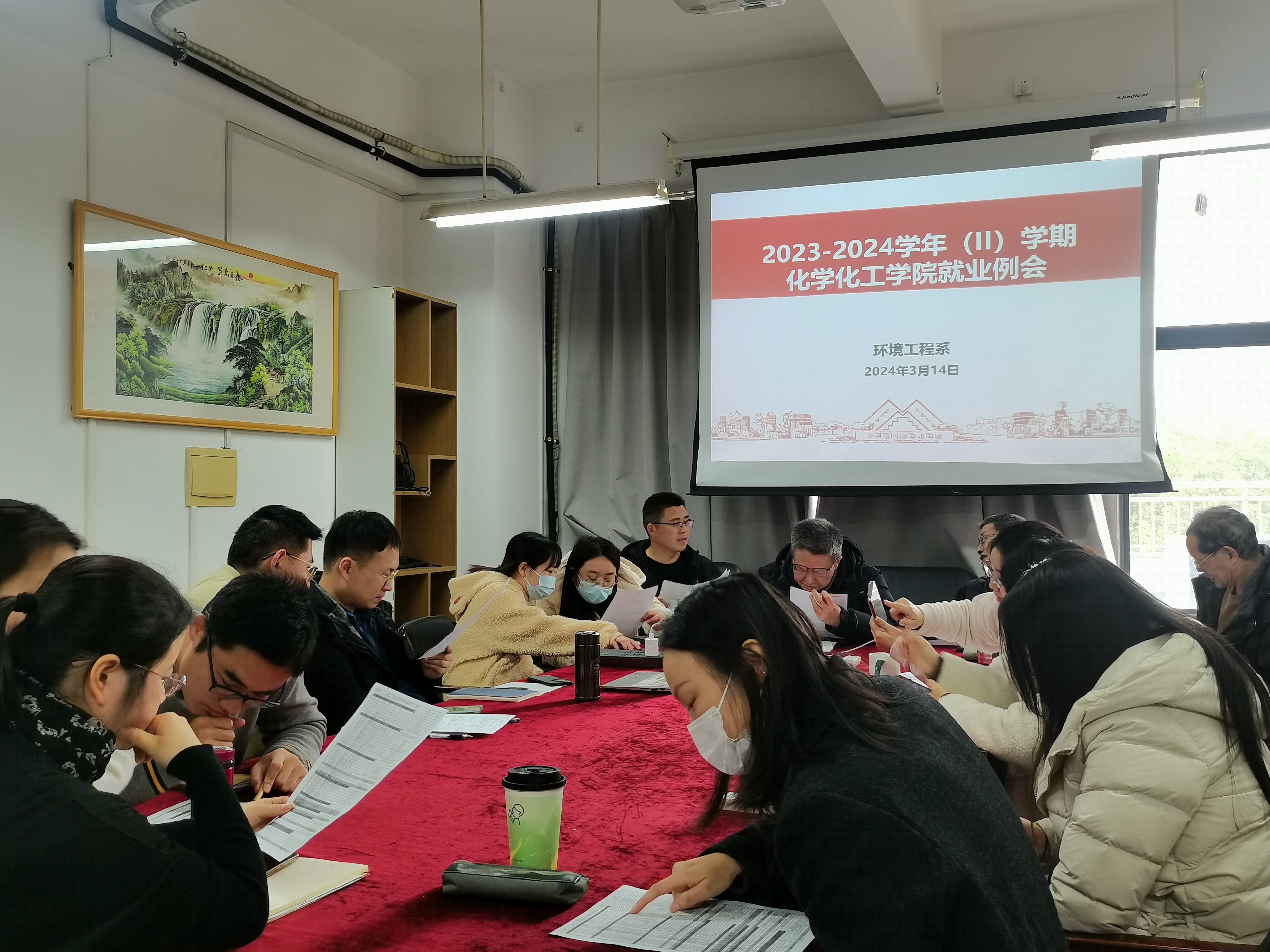 为促进2024届毕业生早就业、就好业,抓住“金三月”社会对人才需求量大的关键期,3月14日下午,化学化工学院环境工程系在实训楼4404会议室召开了就业工作推进会,环境工程系全体学业导师、班主任及辅导员参加会议,会议由系主任李旋坤主持。