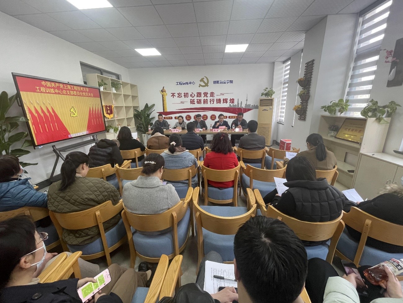 3月19日,工程训练中心党总支在实训楼1446室召开党员大会,选举出席学校第四次党代会代表,工程训练中心党总支全体党员出席大会,纪委办监督检查室主任苏莹列席大会。大会由中心党总支书记王成涛同志主持。会议在庄严的中华人民共和国国歌声中拉开序幕。