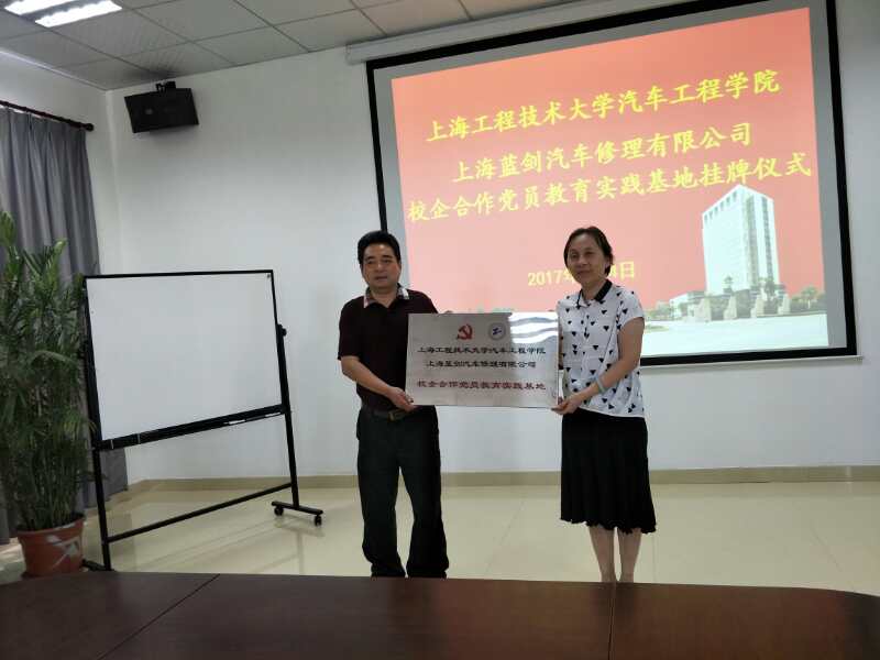 为了加强高校企业的合作与交流,强化党员教育实践合力,上海工程技术大学汽车工程学院与上海蓝剑汽车修理有限公司校企合作党员教育实践基地挂牌仪式于7月4日上午在上海蓝剑汽车维修有限公司开展。