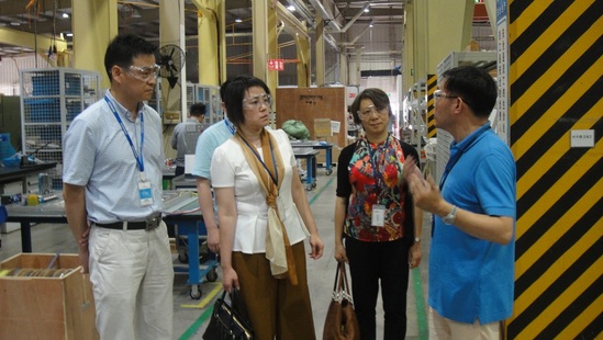 我校95届校友必能信生产部工程总监沈毓的带领下,老师们首先参观了公司的生产车间,公司先进高效的生产设备,务实求真的管理理念让老师们留下了深刻印象。