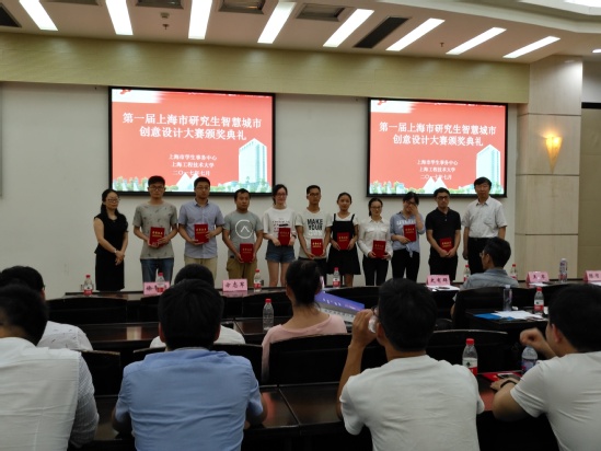 7月5日,由上海市学位委员会指导,上海市学生事务中心和上海工程技术大学主办的“第一届上海市研究生智慧城市创意设计大赛决赛暨颁奖典礼”在上海工程技术大学顺利举行。上海市学生事务中心周璐璐主任,我校研究生处徐菁利处长,东华大学史有群、上海理工大学陈有亮等上海市平台专家出席了颁奖典礼。会议由上海市研究生智慧城市平台专家组组长刘翔教授主持。