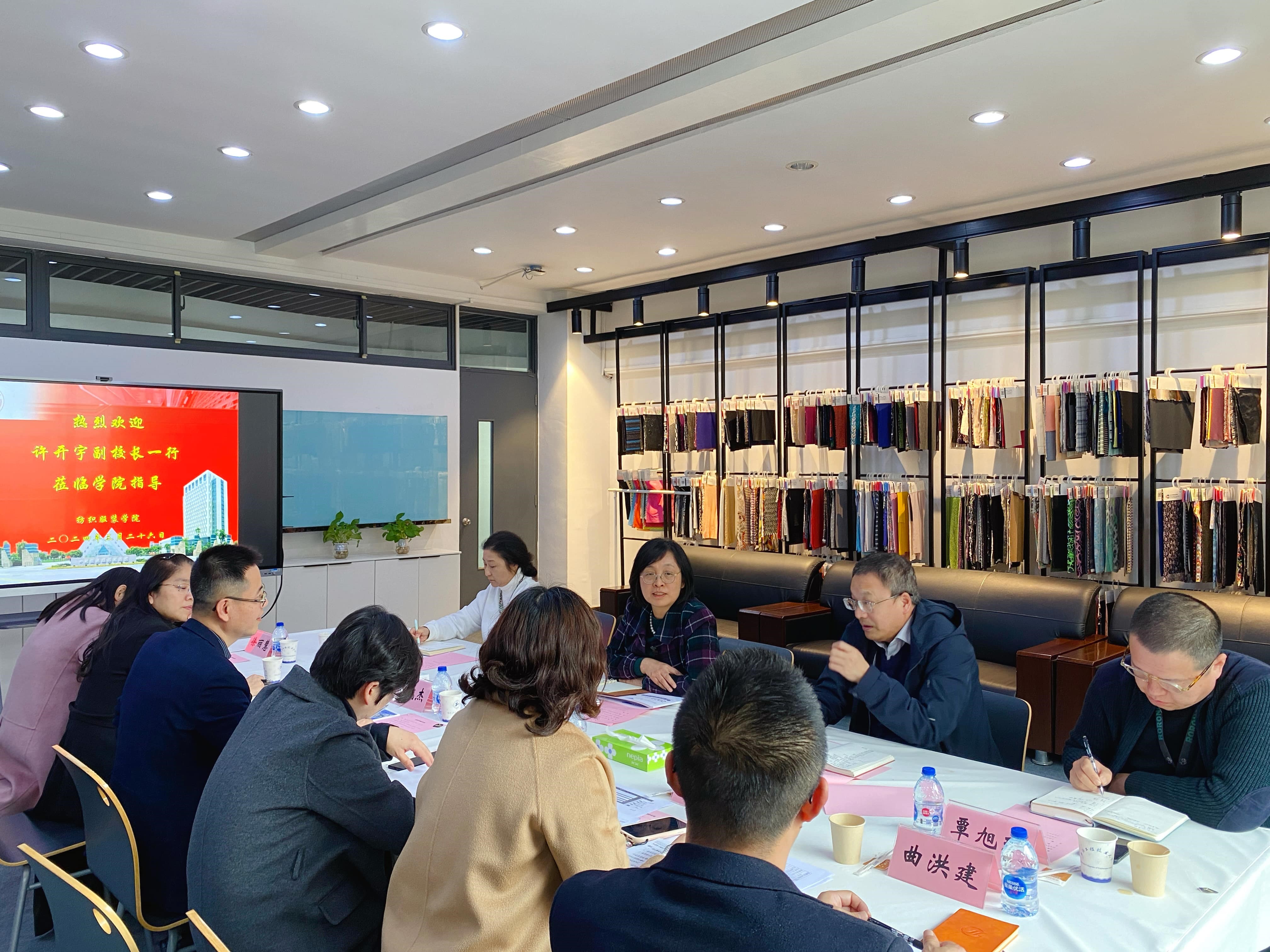 3月26日下午,副校长许开宇一行赴纺织服装学院调研,并与学院党政领导班子成员和系主任进行深入交流,发展规划处处长殷志祥、科研处处长谢红和大学科技园发展有限公司总经理覃旭瑞陪同调研。会议由纺织服装学院院长辛斌杰主持。