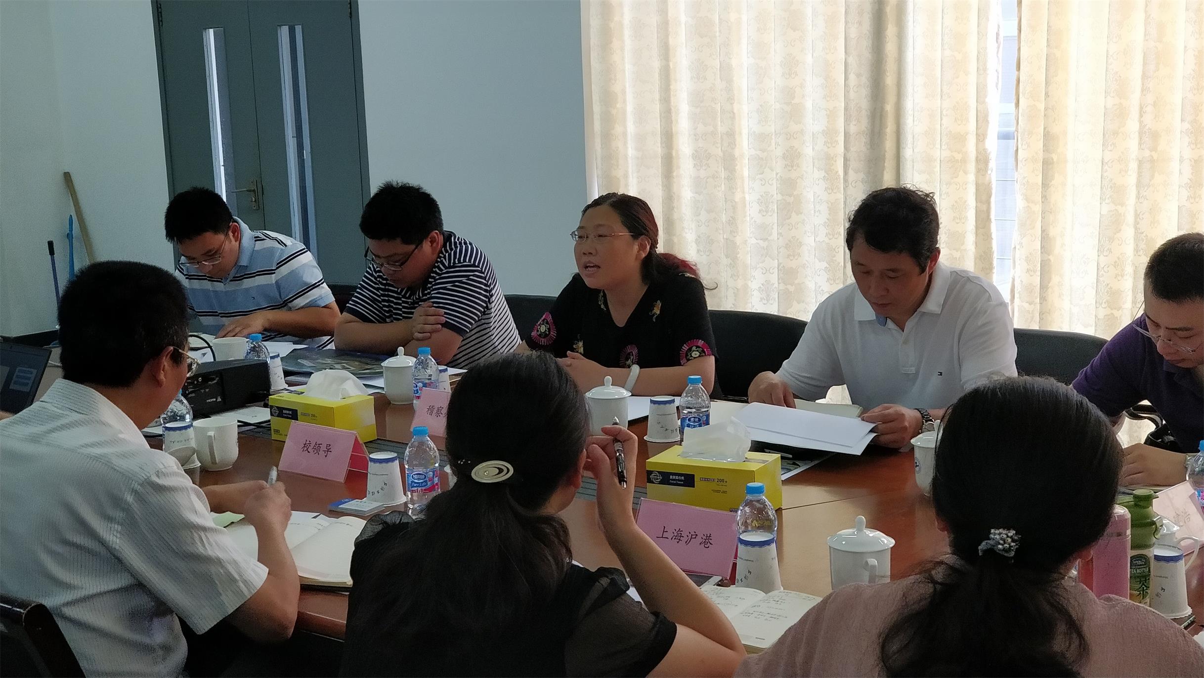 基建处负责人刘国斌同志对我校“松江校区二期”工程项目进展情况做了详细的介绍,随后发改委稽查办与我校代表进行了深入交流,详细地对我校“松江校区二期”工程资料进行查阅。