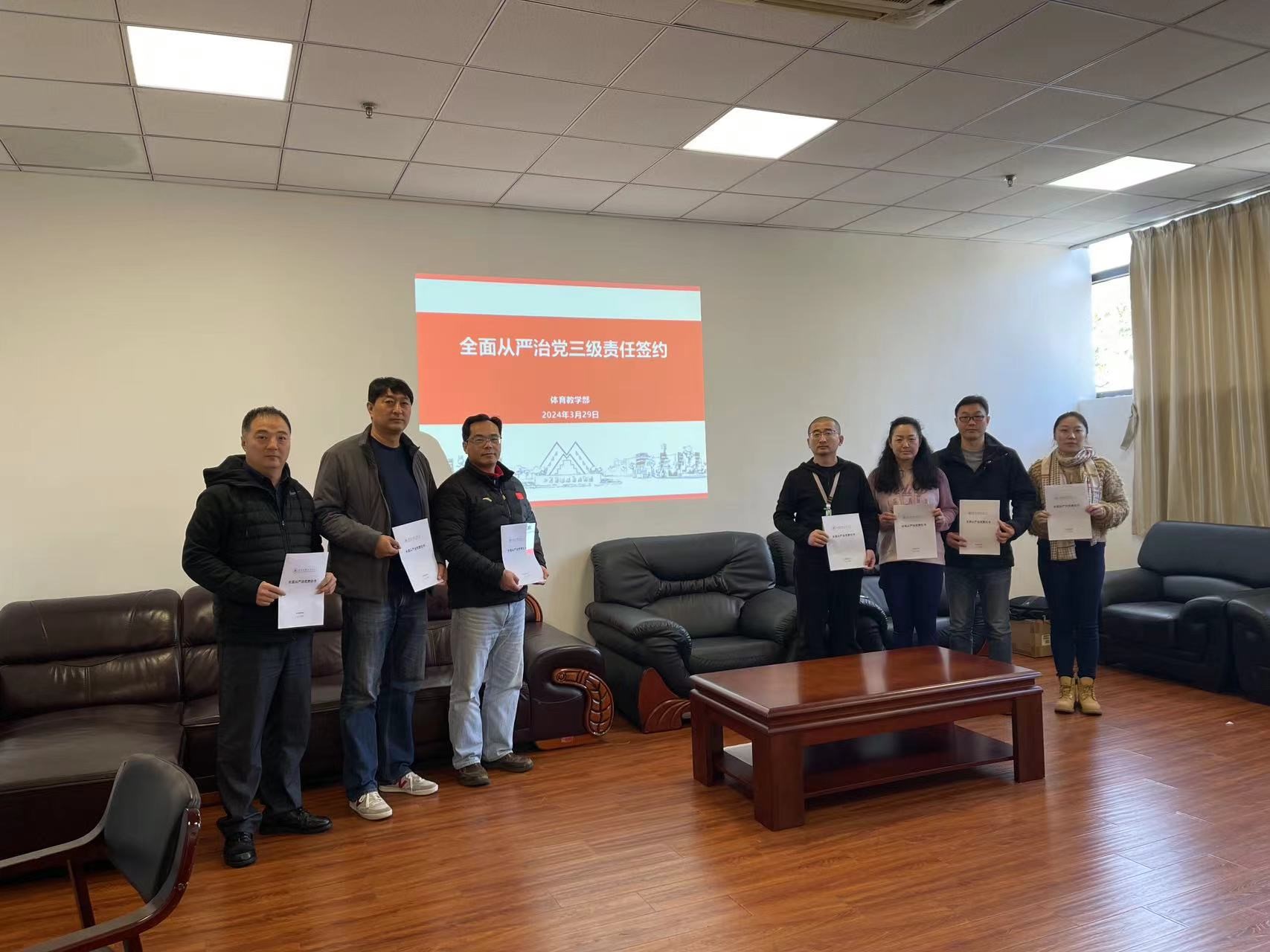 全体党政领导班子、党支部书记、教研室主任等签署了《体育教学部党总支2024年全面从严治党责任书》。
