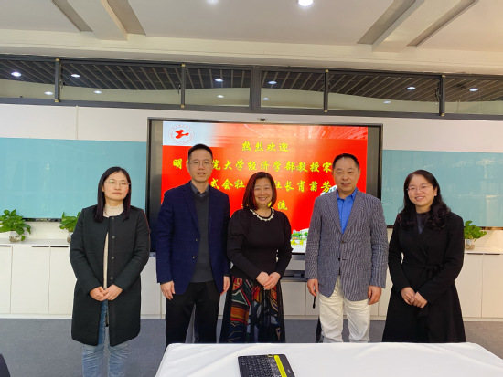 3月29日下午,明治学院大学经济学部教授宋立水、株式会社丹京社长肖菊芳访问纺织服装学院,双方在艺术楼C210会议室交流座谈。纺织服装学院院长辛斌杰,副院长李春晓、徐丽慧,时尚设计与传播专业副系主任胡强老师参加交流,辛斌杰院长主持。