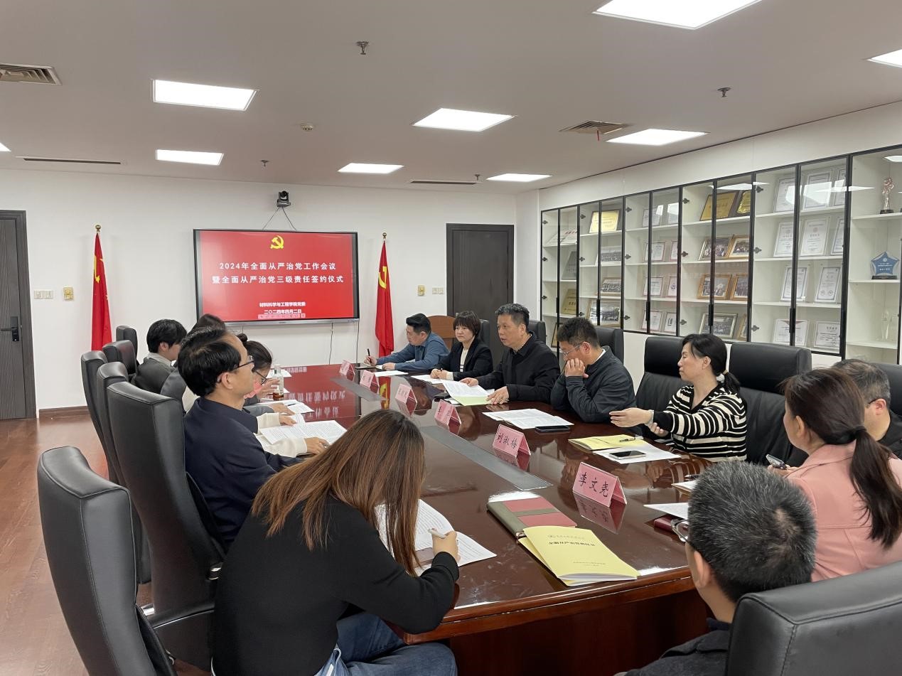 会上,学院党委全体领导班子、工会主席、系室主任和党支部书记签署了《材料科学与工程学院党委2024年全面从严治党责任书》。
