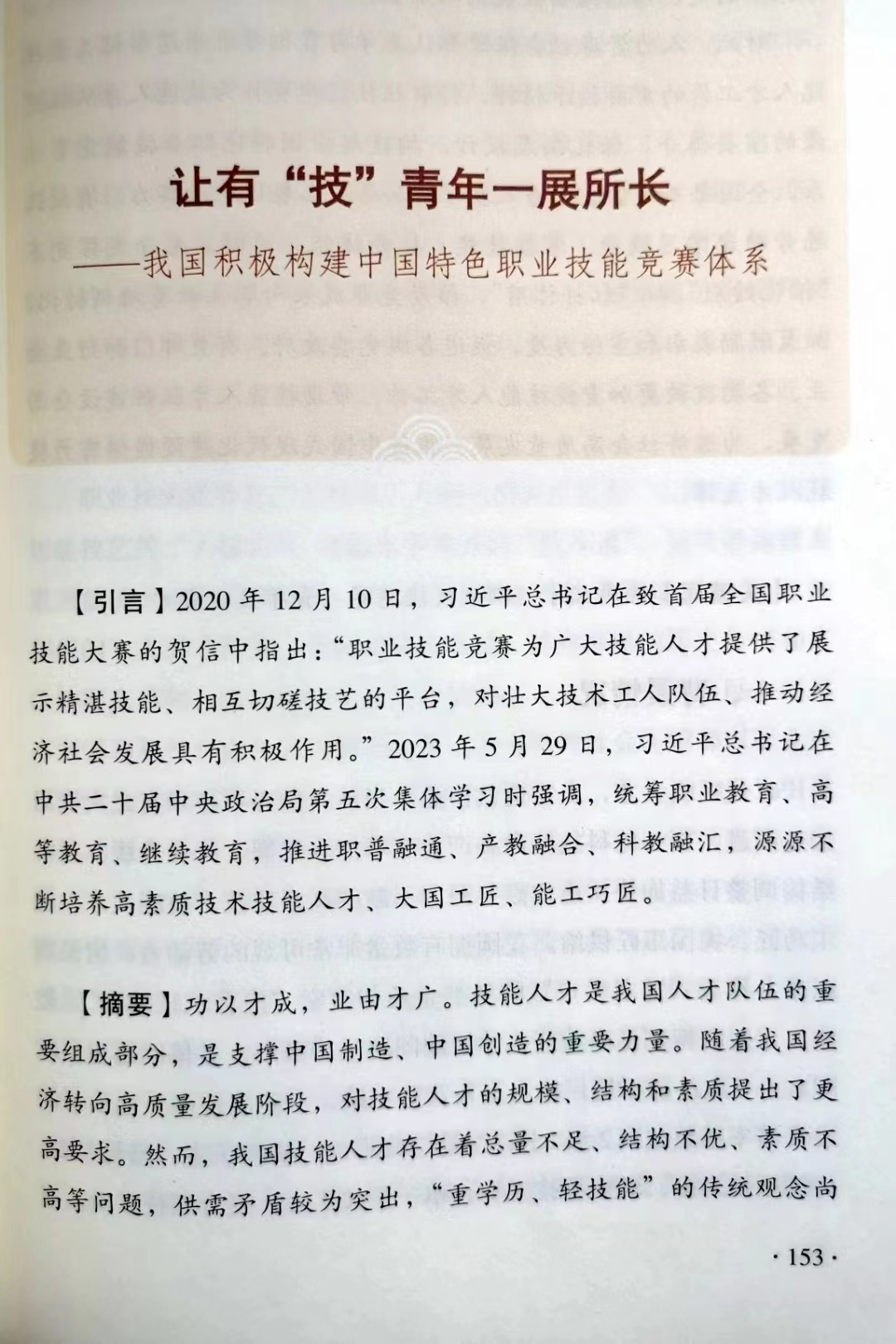近日,由习近平总书记作序的《第六批全国干部学习培训教材》由人民出版社、党建读物出版社出版。我校世界技能大赛中国(上海)研究中心罗胜强副教授参编其中《推进和拓展中国式现代化案例选》(文化·社会篇)案例《让有“技”青年一展所长--我国积极构建中国特色职业技能竞赛体系》。