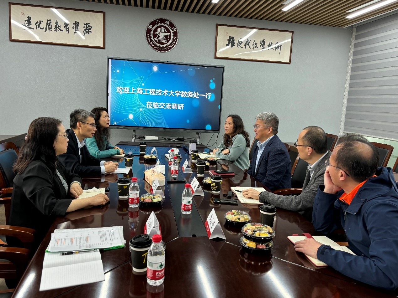 为进一步推进我校智慧教室建设和常态化直录播教室改造,4月3日上午,教务处处长饶品华,副处长金晓怡、刘珂艳,现代教育技术科白鹏玲一行,前往上海交通大学教育技术中心学习调研。上海交通大学教育技术中心主任沈宏兴、副主任张健带队热情接待了此次调研。