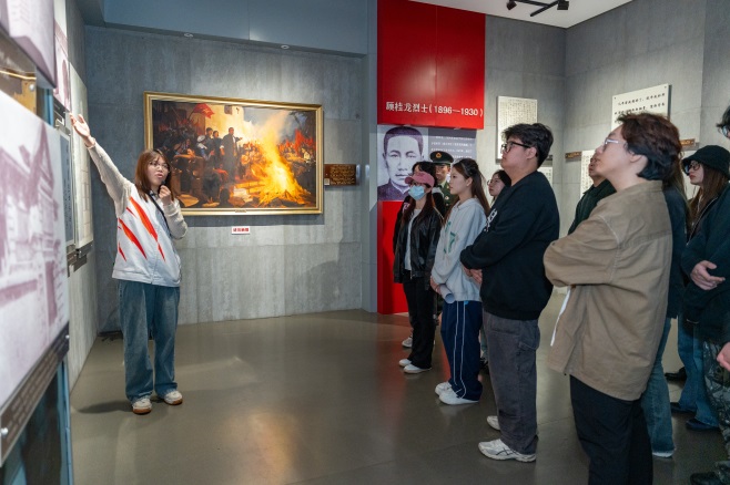 祭扫仪式后,全体同学来到革命烈士纪念馆,认真聆听革命先烈的英勇事迹,一张张照片、一段段文字、一件件物品再现了那段波澜壮阔的革命历程,同学们沉浸式地感悟先辈坚如磐石的理想信念和坚定听党话跟党走的政治信念,爱国主义种子播种到了每位同学的心田。