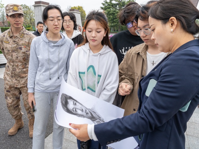 为了缅怀革命先烈,赓续红色血脉,弘扬爱国主义精神,4月3日下午,艺术设计学院学子到松江烈士陵园开展清明节祭扫活动,并举行爱国主义教育和烈士画像志愿服务实践。艺术设计学院“画笔下的红色传承”项目团队、退役军人大学生党支部成员及学院陵园讲解员等参加活动,松江烈士陵园主任卫琳全程讲解。