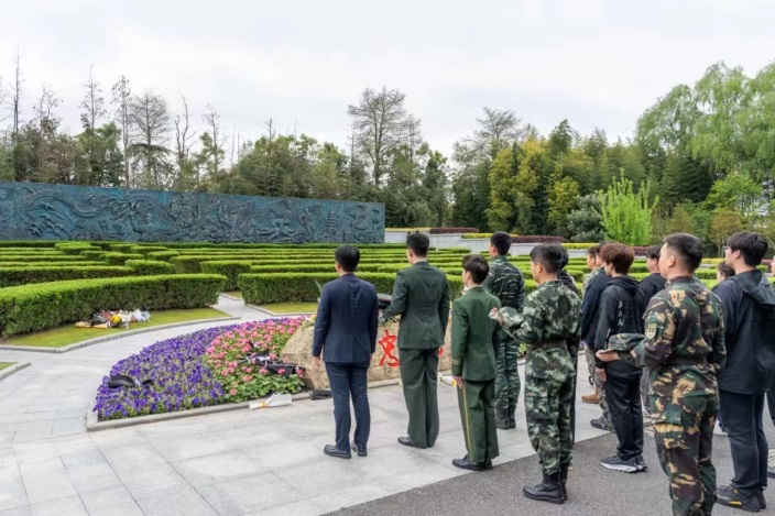 师生们怀着对革命先辈的崇高敬意和无限哀思,缓步来到纪念碑后方的墓区,默哀三鞠躬,缅怀那些为国家独立、人民解放和社会进步抛头颅洒热血的烈士。