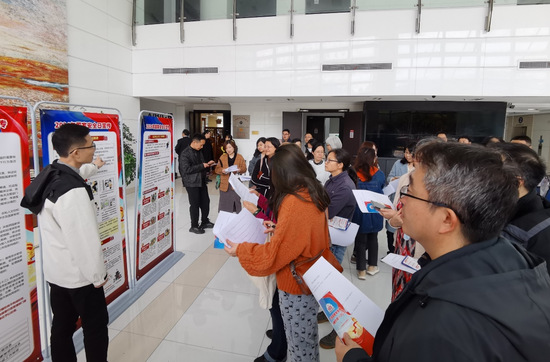 过程中,老师们认真倾听,不时交流互动。大家纷纷拿起国家安全教育日宣传彩页和知识竞答问卷,共同学习探讨国家安全教育有关知识和典型案例。大家三五成群,自发集体答题,闻讯而来的老师不约而同加入观展队伍,现场学习气氛浓厚。