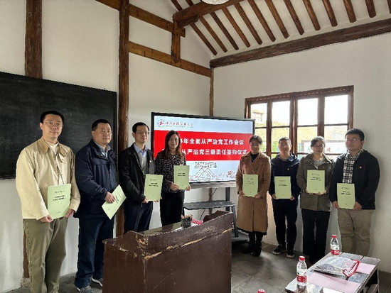 全体中层干部在颜安小学陈云教室召开全面从严治党工作会议暨全面从严治党主体责任签约仪式,全面从严治党工作会议及签约仪式由马克思主义学院党委书记董旖旎主持。
