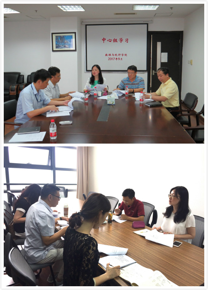 9月21日中午和9月19日下午,数理与统计学院、外国语学院党总支中心组学习分别在行政楼1308和1504会议室举行。会上,王书记围绕习近平总书记“7•26”重要讲话精神作主题发言。她指出,在党的十九大召开前夕,习近平总书记的重要讲话总结了过去五年来取得的丰硕成果,为全党认识和把握十八大以来党中央实践创新和理论创新成果提供了一个总体框架和基本遵循,为全党全国全社会做好下一阶段各项工作提供了行动纲领,为中国特色社会主义事业发展指明了方向。她强调,当前是“决胜全面小康社会实现中国梦”的关键时期,学院应当立足发展新常态,充分把握“一带一路”发展契机,推动学科建设与专业发展,大力培养高水平人才。班子成员共同学习了习近平总书记在省部级主要领导干部专题研讨班上的重要讲话精神,并就“四个自信”、协同推进“四个全面”战略布局、统筹推进“五位一体”总体布局的内容作了重点研读.