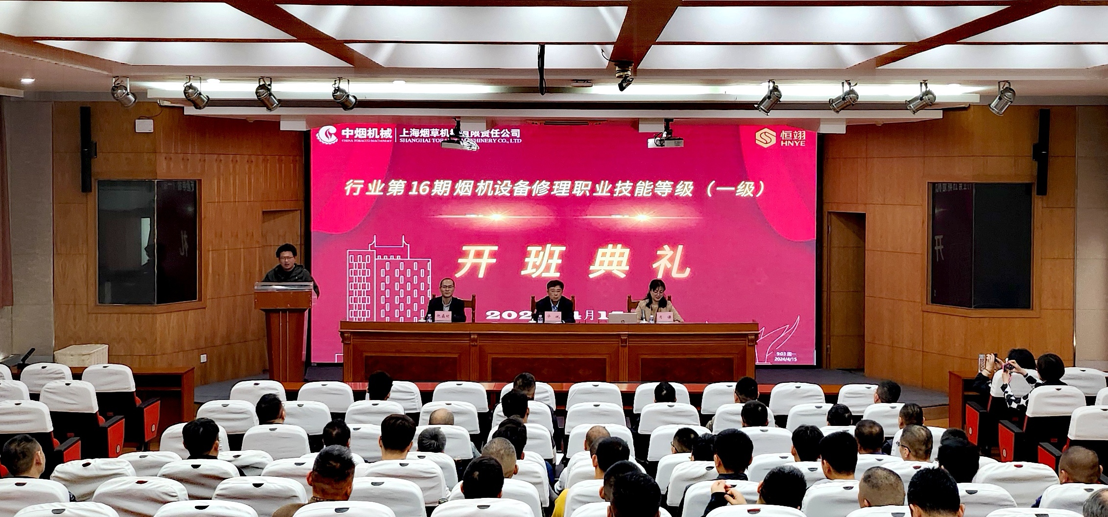 4月15日上午,中烟机械上海烟草机械有限责任公司第16期烟机设备修理职业技能等级(一级)培训班在高职学院综合楼11楼思进厅开班。来自全国各省市的57名烟机技术骨干汇聚虹口校区,参加为期两个月的理论知识及实践技能培训。上海烟草机械有限责任公司副总经理兼工会主席华斌、教培中心主任倪磊明、高职学院副院长肖谦、学院继续教育部负责人出席开班典礼,开班典礼由烟机教培中心刘昕宇主持。