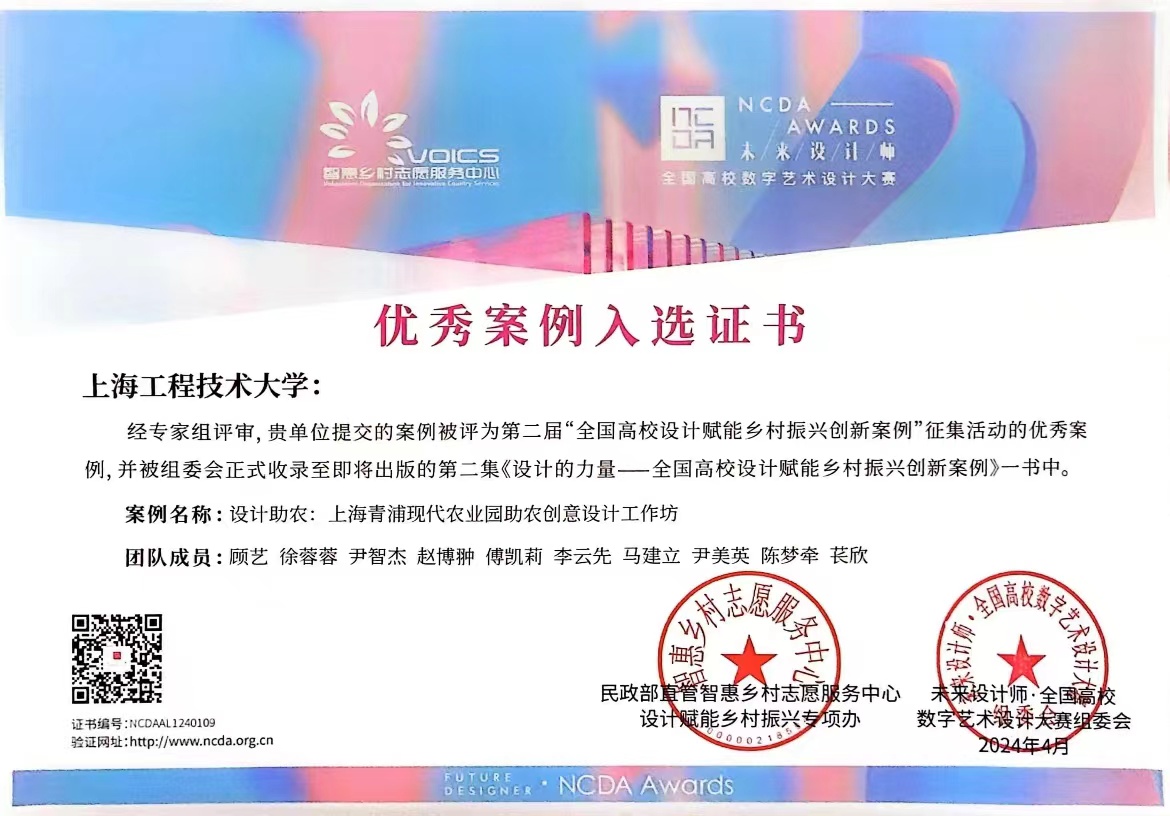 我校案例《设计助农:上海青浦现代农业园助农创意设计工作坊》入选第二届全国高校设计赋能乡村振兴创新案例征集活动优秀案例。