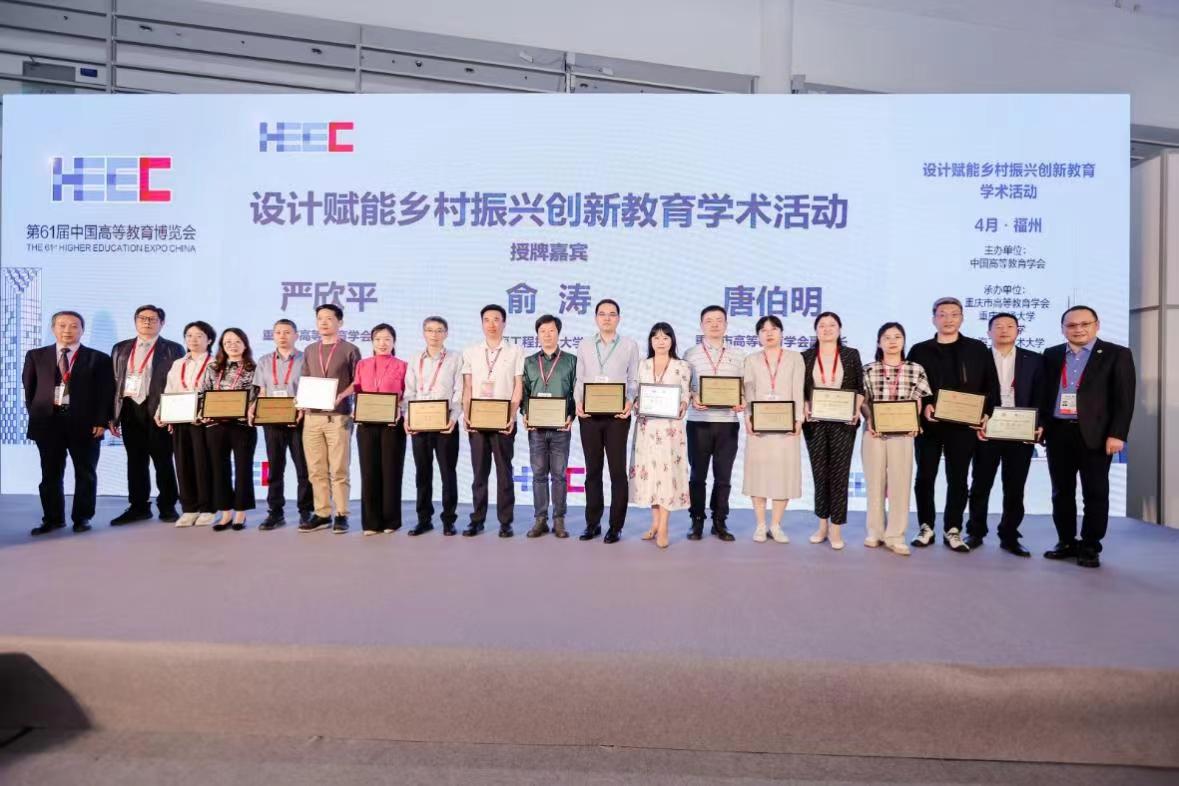 活动总结了设计赋能乡村振兴工作的先进经验和典型做法,表彰了2023年设计赋能乡村振兴先进单位。俞涛校长与重庆市高等教育学会会长严欣平、重庆市高等教育学会副会长唐伯明共同为受表彰单位授牌。