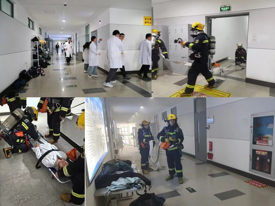 4月12日下午1时许,逃生疏散演练开始。实训4号楼5层冒出浓烟、4号楼消防警铃突然响起,在应急疏散员的引导下,正在开展教学、科研、办公的200余位师生在5分钟内完成了疏散撤离,并于10分钟内全部到达指定集合点。同时,学校微型消防站的队员在3分钟内赶到了事发点,开始了初期处置。10分钟后,应急消防队也赶到事发地点进行进一步处突,并开展被困人员施救与伤员转运等工作。