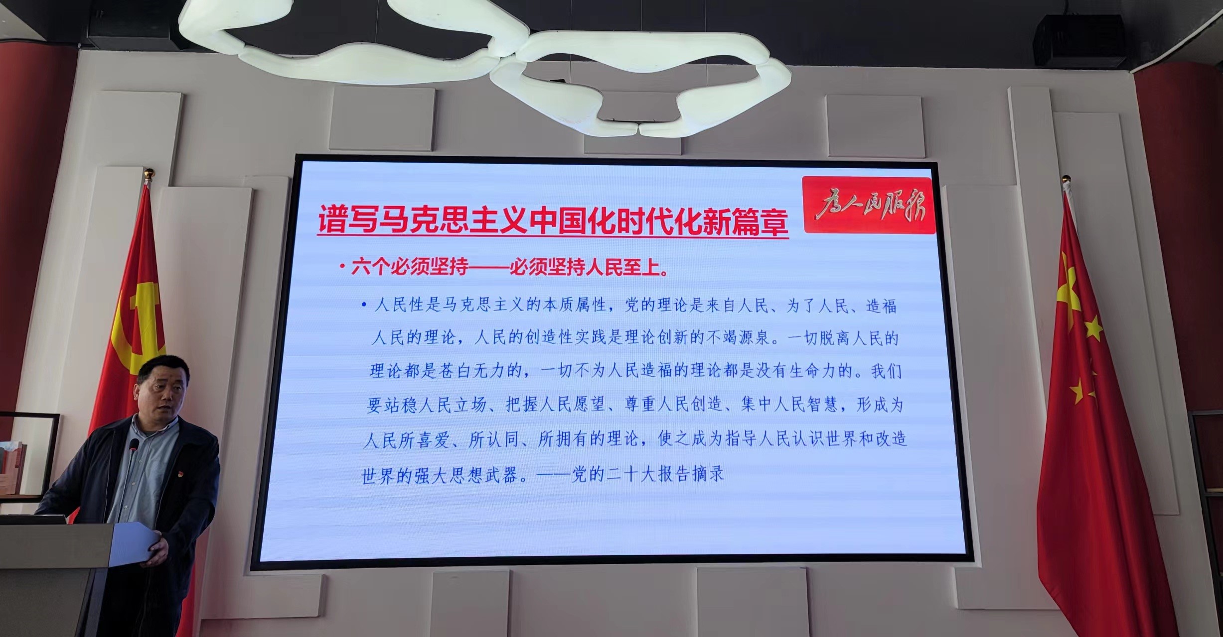 于凯教授为大家开展“坚持以人民为中心”专题党课。于凯教授从践行党的根本宗旨、保持党的政治本色、建立党与群众的血肉联系等视角细致解读了“坚持以人民为中心”的理论内涵和实践意义。整场党课脉络清晰、情理交融,引发了与会者的热烈共鸣,对于进一步增强教师党员的根本宗旨意识、提高党性修养、强化践行初心使命的自觉意识,踏实做好立德树人铸魂育人工作,有很好的启迪作用。